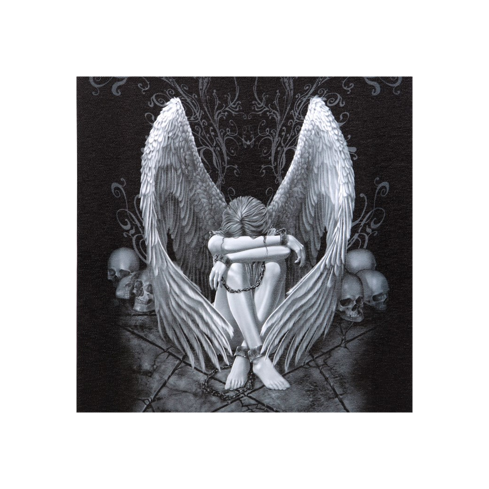 This dark and edgy canvas plaque features licensed artwork from Spiral Direct. 'Enslaved Angel' depicts an angel in chains crying over skulls of the dead and will elevate any gothic decor. 19x25cm.