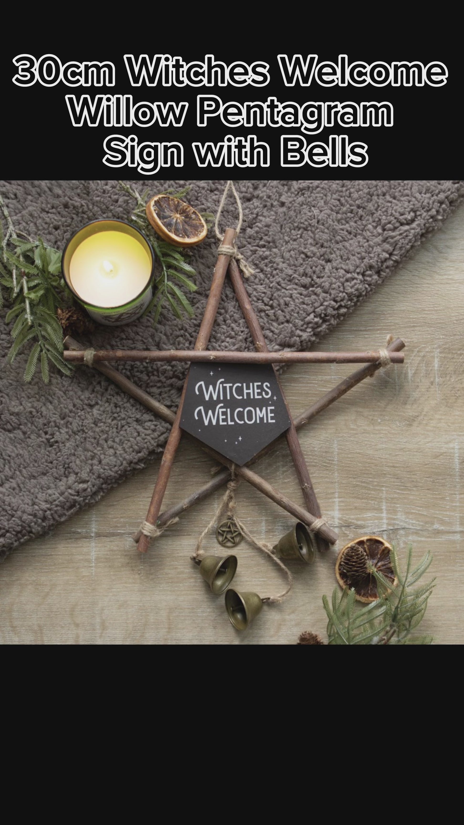 30cm Witches Welcome Willow Pentagram Sign with Bells