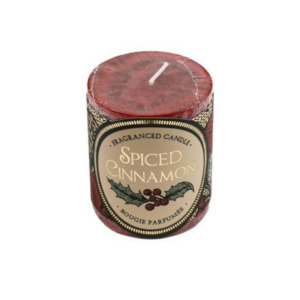A simple 7cm pillar candle in a classic Cinnamon Spice fragrance. Perfect for Christmas displays. Paraffin wax.