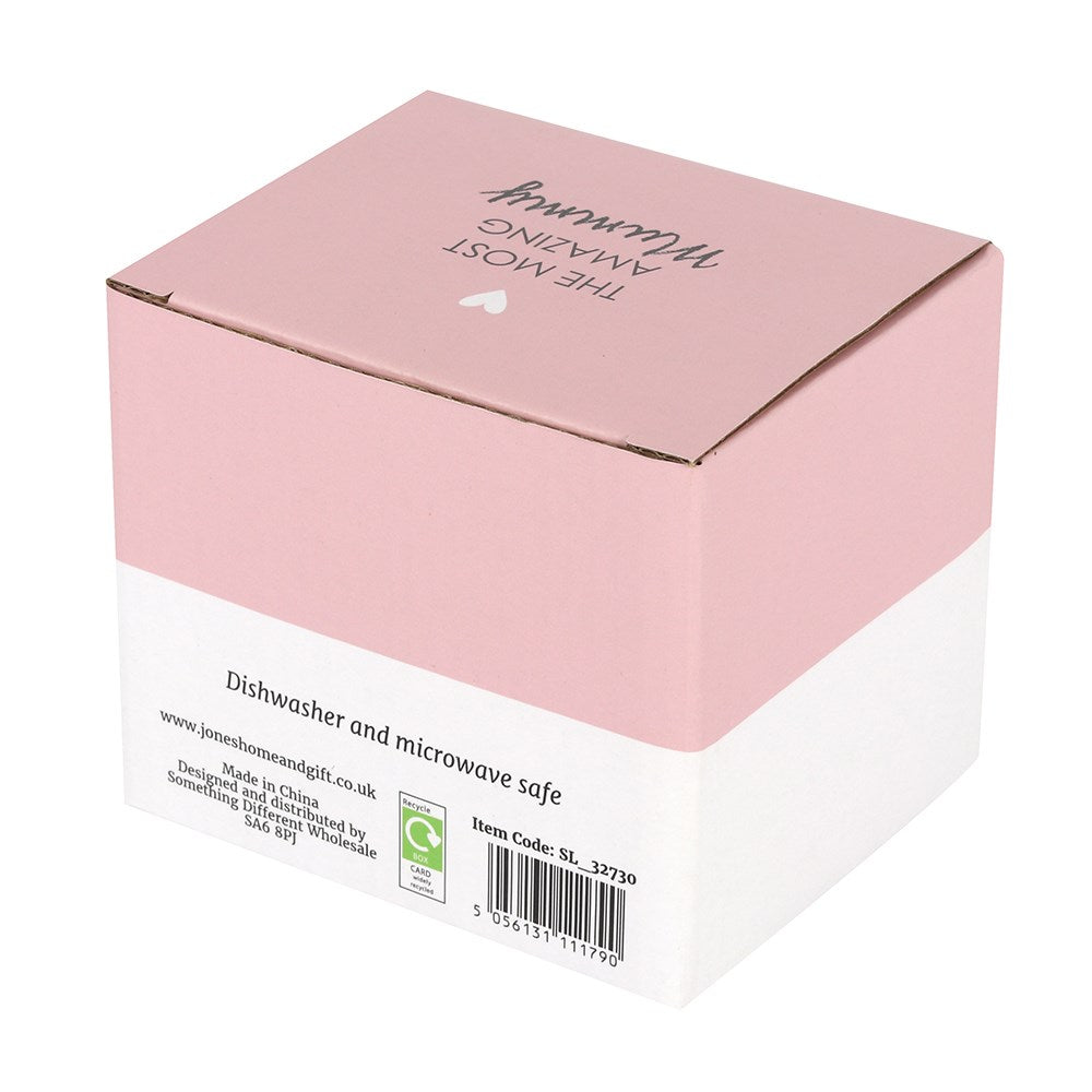 Mums will love receiving this ceramic mug for birthdays or Mother's Day. Sweet 'The most amazing mummy' text is accented by a tiny, pink heart. 500ml capacity. Dishwasher and microwave safe.
