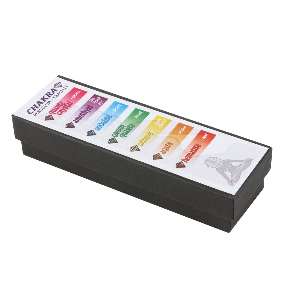 A faceted amethyst pendulum crystal hangs on this beautiful bracelet which is also decorated with beads representing the seven chakras. Use for balancing and focusing energy. When not being worn as a bracelet, the chain can be unclipped so that it hangs like a traditional dowsing pendulum.