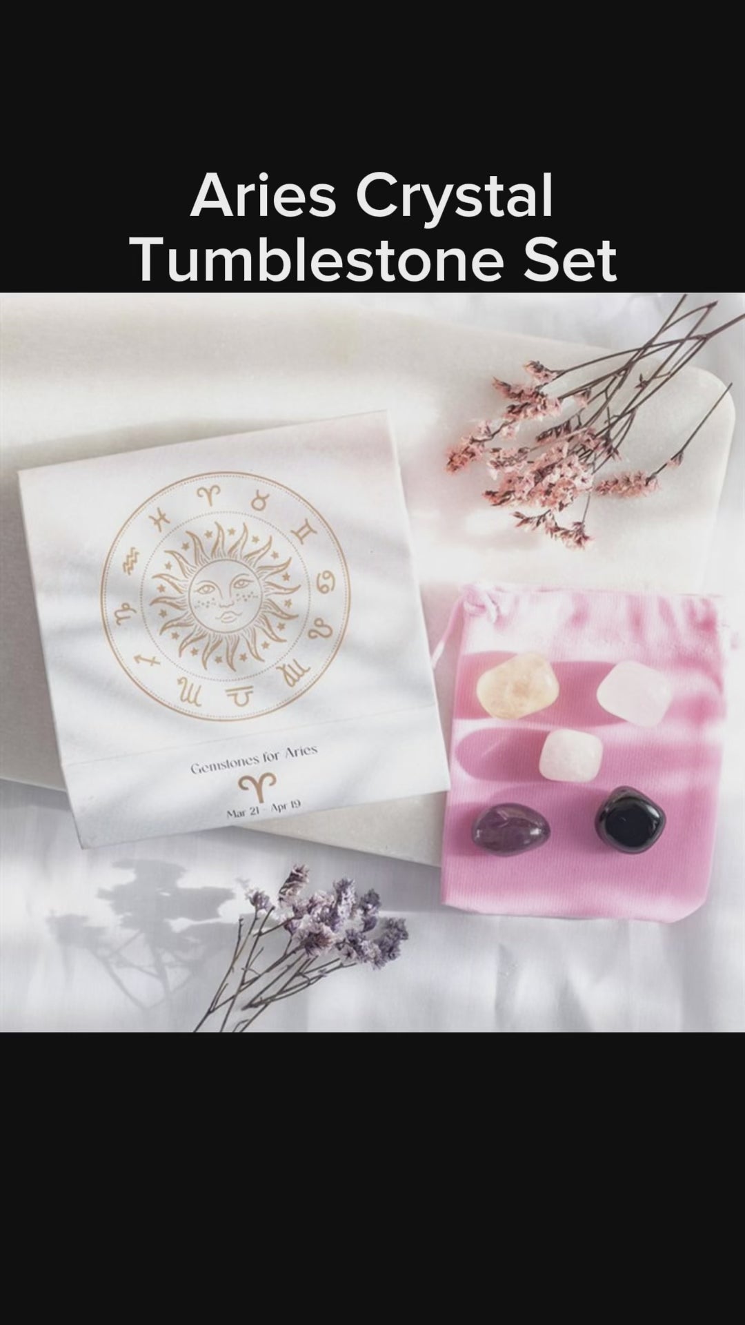 This stunning set of five crystal tumble stones are perfect for the passionate, fiery and determined Aries. Designed to enhance and balance the unique traits of Aries individuals, by combining the harmonising power of crystals with the innate qualities of this Fire sign. The set includes Rose Quartz for unconditional love, Amethyst for peace, Black Obsidian for truth, Lemon Quartz for clarity and Clear Quartz for balance. Beautifully presented in a magnetic closure gift box with information regarding each crystal, and a velvet drawstring bag to keep the tumble stones protected.