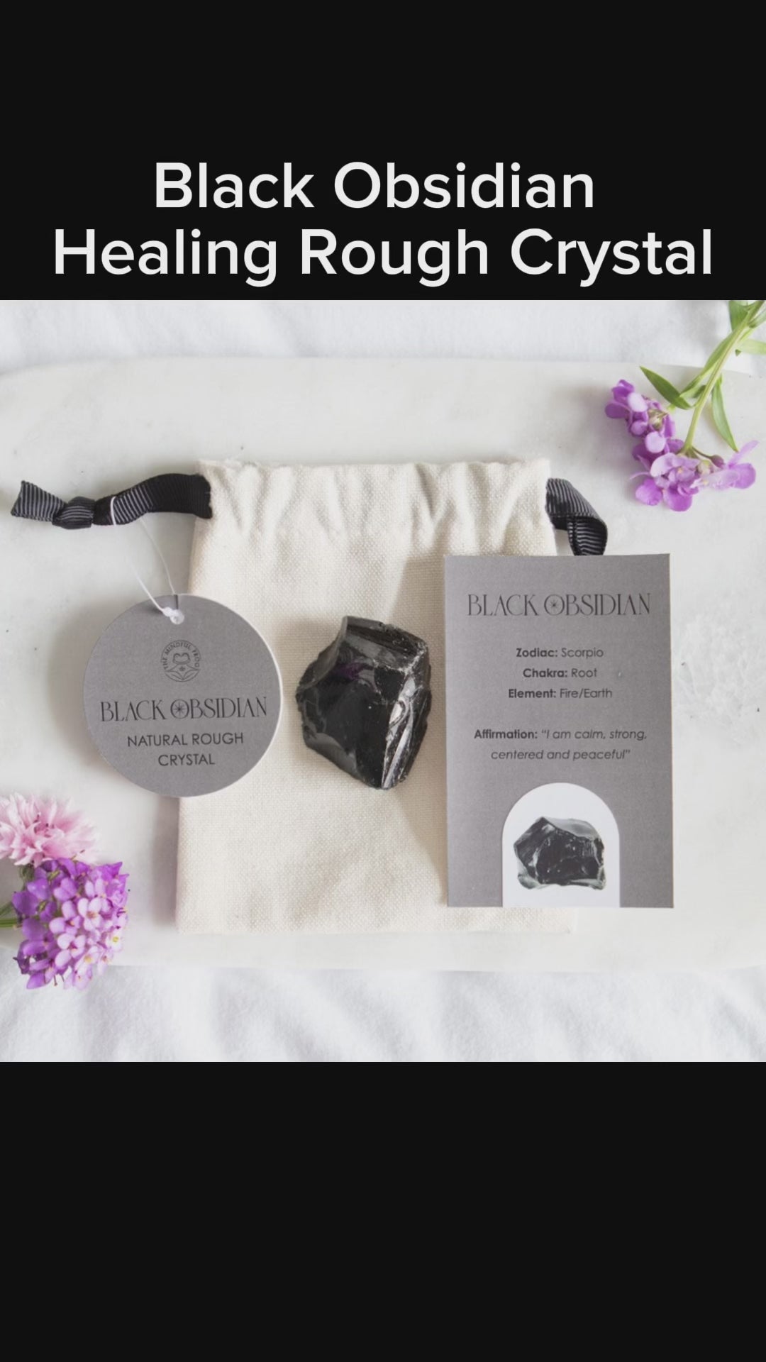 Black obsidian (a type of volcanic glass) stones are said to promote truth and are commonly used as an aid in crystal healing and scrying. Harness its rumoured healing properties to strengthen spiritual connections. Comes in a cotton drawstring pouch with matching information card. Size, shape and colour of stone will vary due to its unique nature.