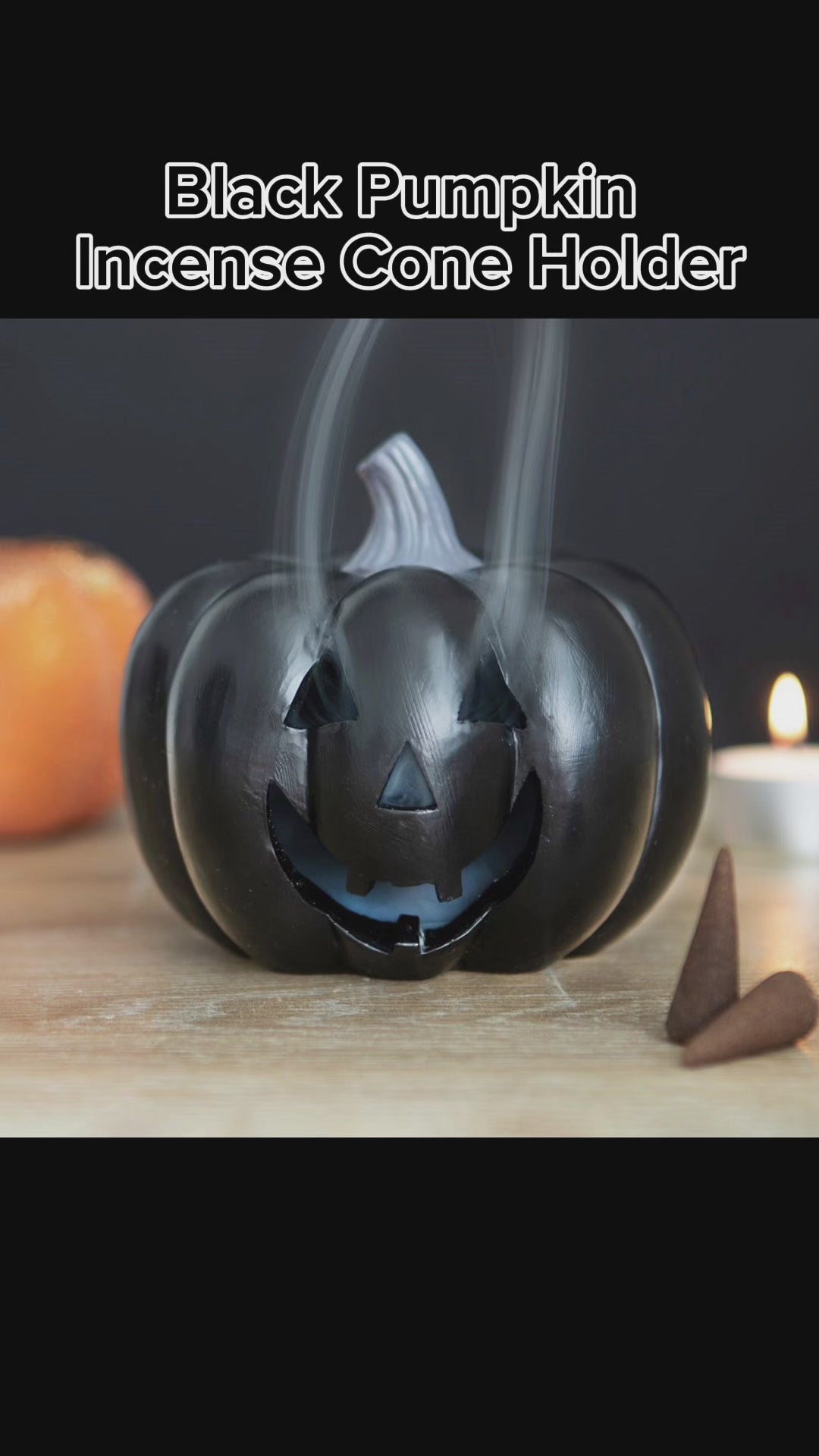 Great for Halloween and those who like something a bit alternative, this black pumpkin incense cone holder features a solid black finish with a cut out face design. Place a smoking incense cone in the holder and watch as the smoke curls out of the jack-o'-lantern's face.