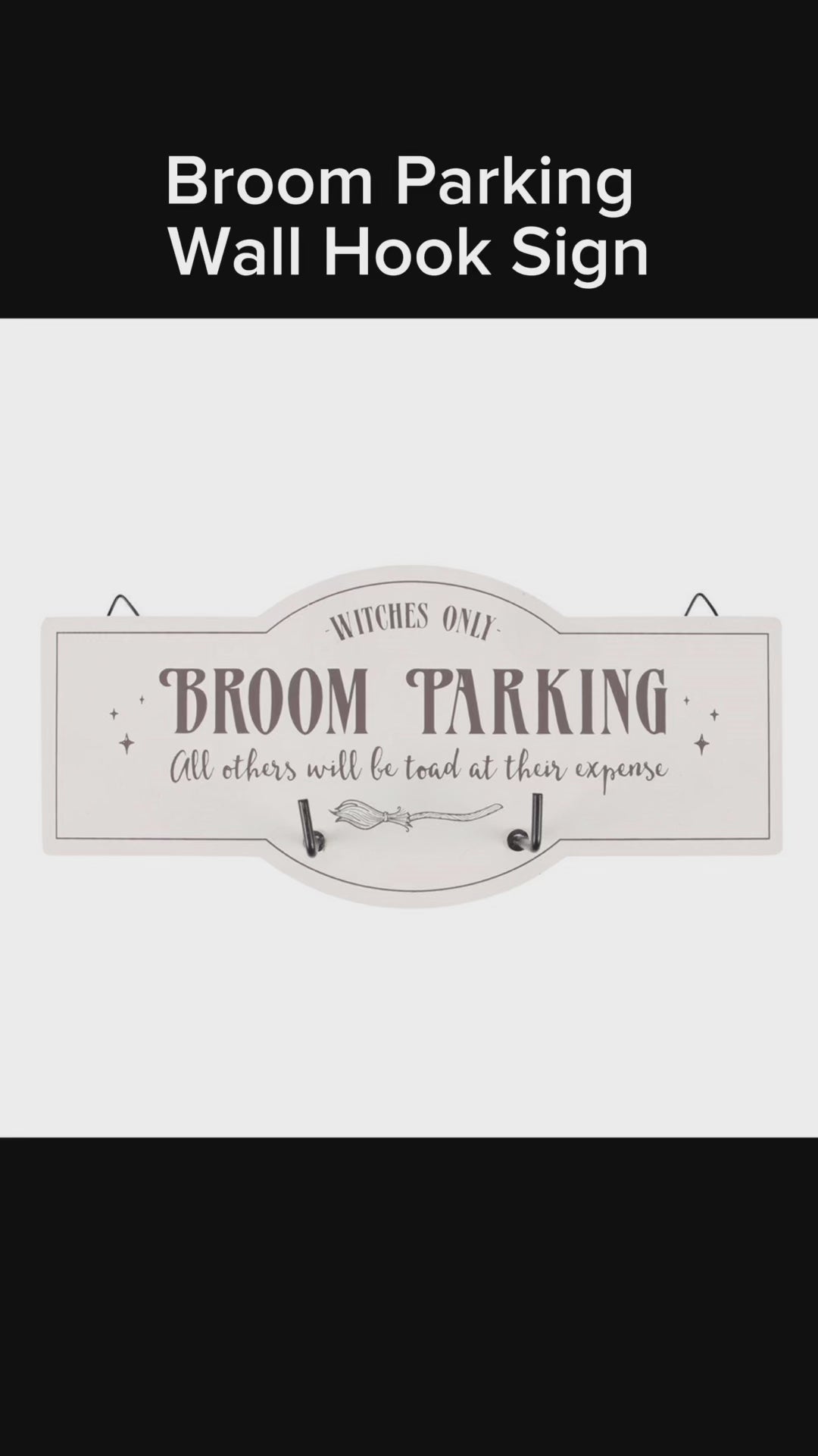Park your broomstick (or car keys and umbrella) on this witchy wall hook sign! Features a whimsical broom illustration and fun text that reads; 'Witches Only - Broom Parking - All others will be toad at their expense' with two metal hooks.