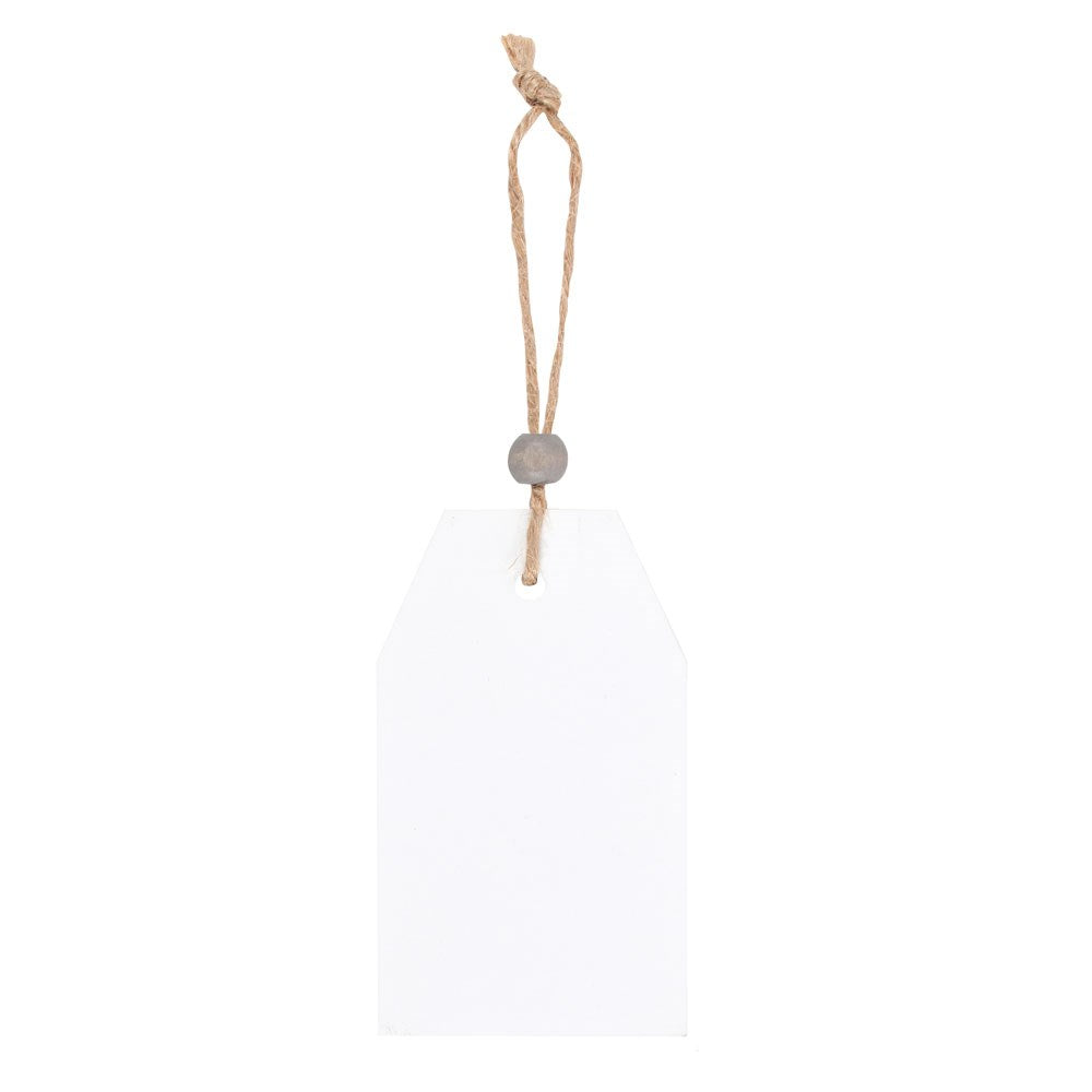 The perfect token gift for family and friends, this white sentiment wooden tag-shaped decoration features the words 'You can't buy happiness, but you can buy wine and that's pretty close'. Approximately 8cm in height with twine hanger and finished with a wooden bead.