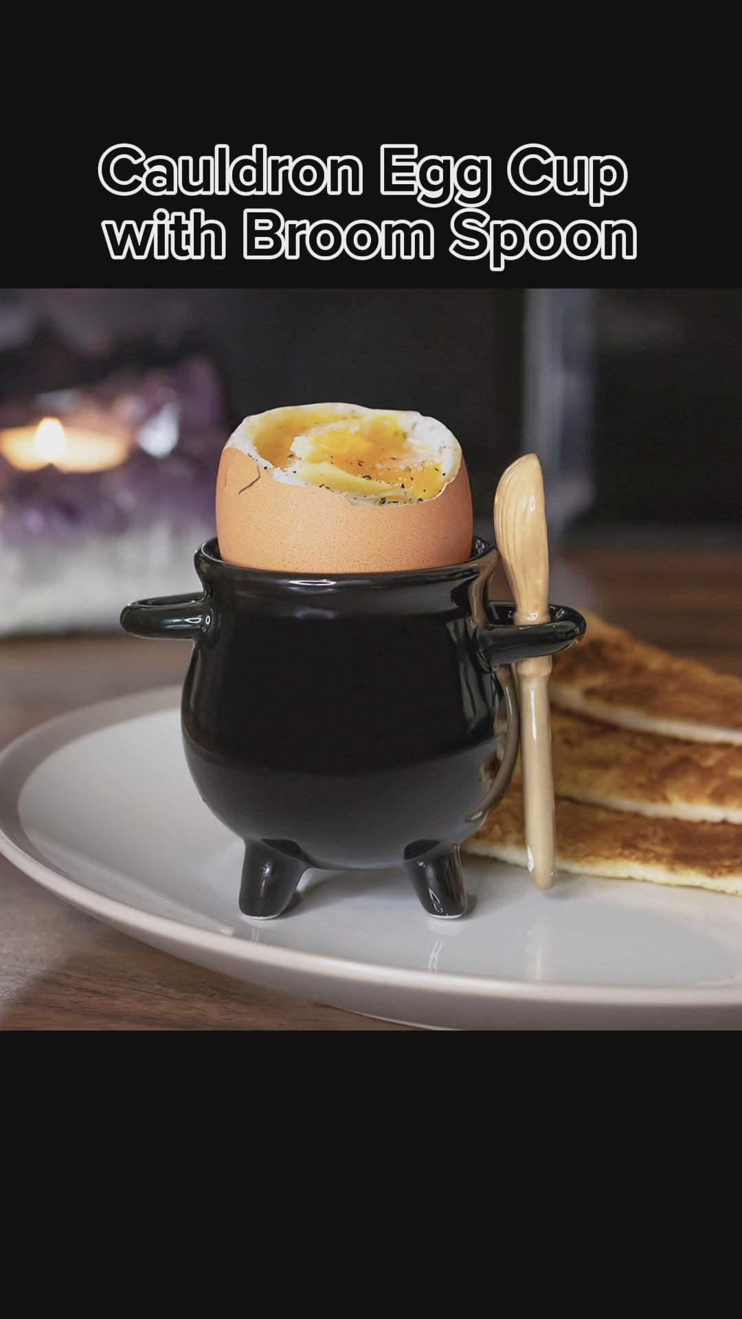 Serve up a magical boiled egg in this charming cauldron egg cup, complete with a broom inspired spoon to get you off to a 'cracking' start.