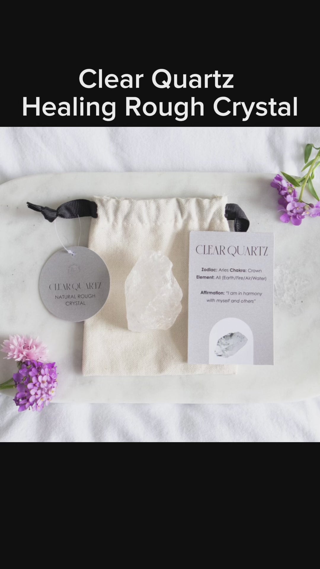 Clear quartz crystals are said to promote harmony and are commonly used as an aid in crystal healing. Harness its rumoured healing properties to clear mental blocks and protect against negative energies. Comes in a cotton drawstring pouch with matching information card. Size, shape and colour of stone will vary due to its unique nature.