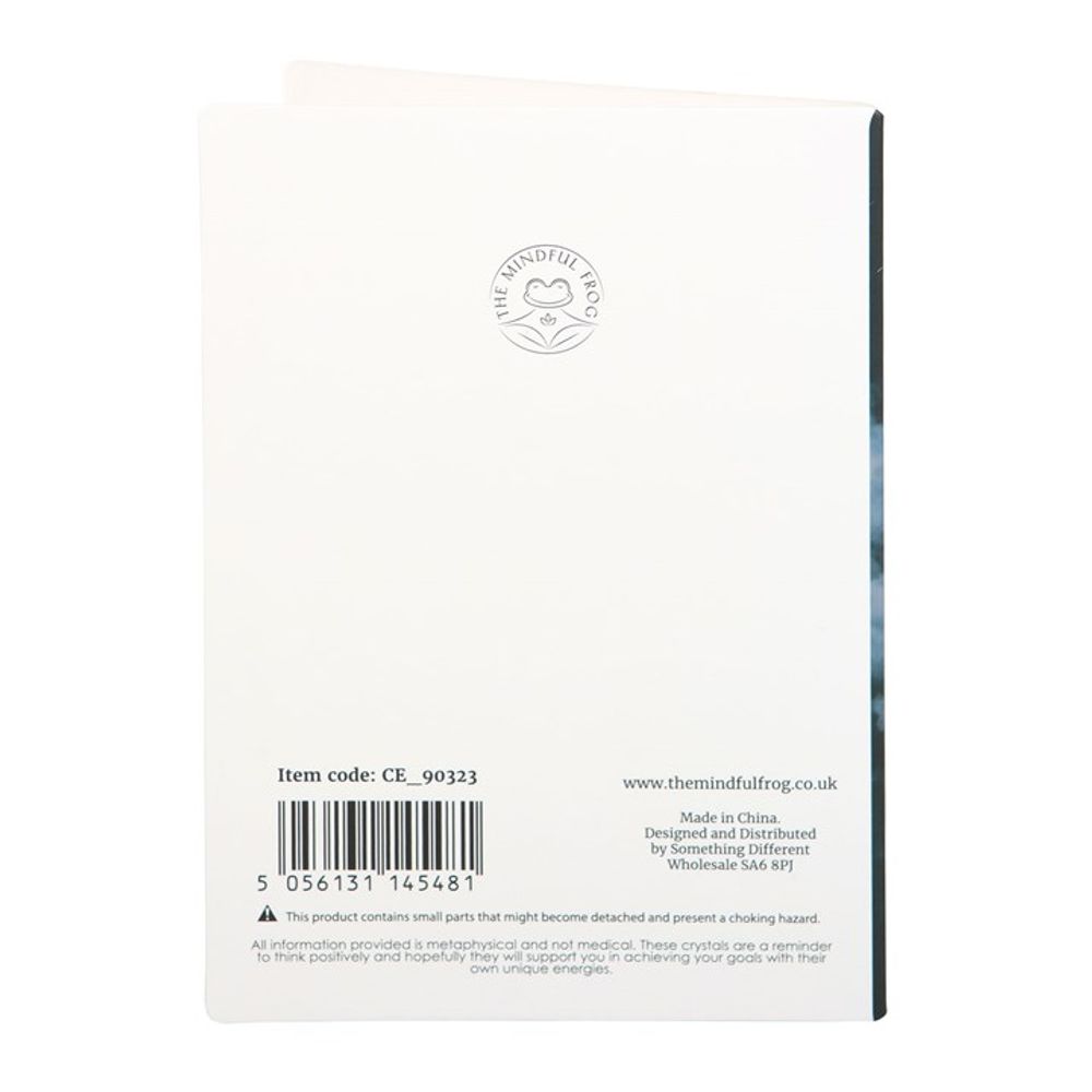 Give the gift of magic with this meaningful crystal greeting card. Includes a small black obsidian crescent moon attached to a greeting card with 'The darkest nights produce the brightest stars’ text. Black obsidian is a spiritual stone used for protection, grounding, and creating a calming atmosphere. Card left blank inside. Envelope included.