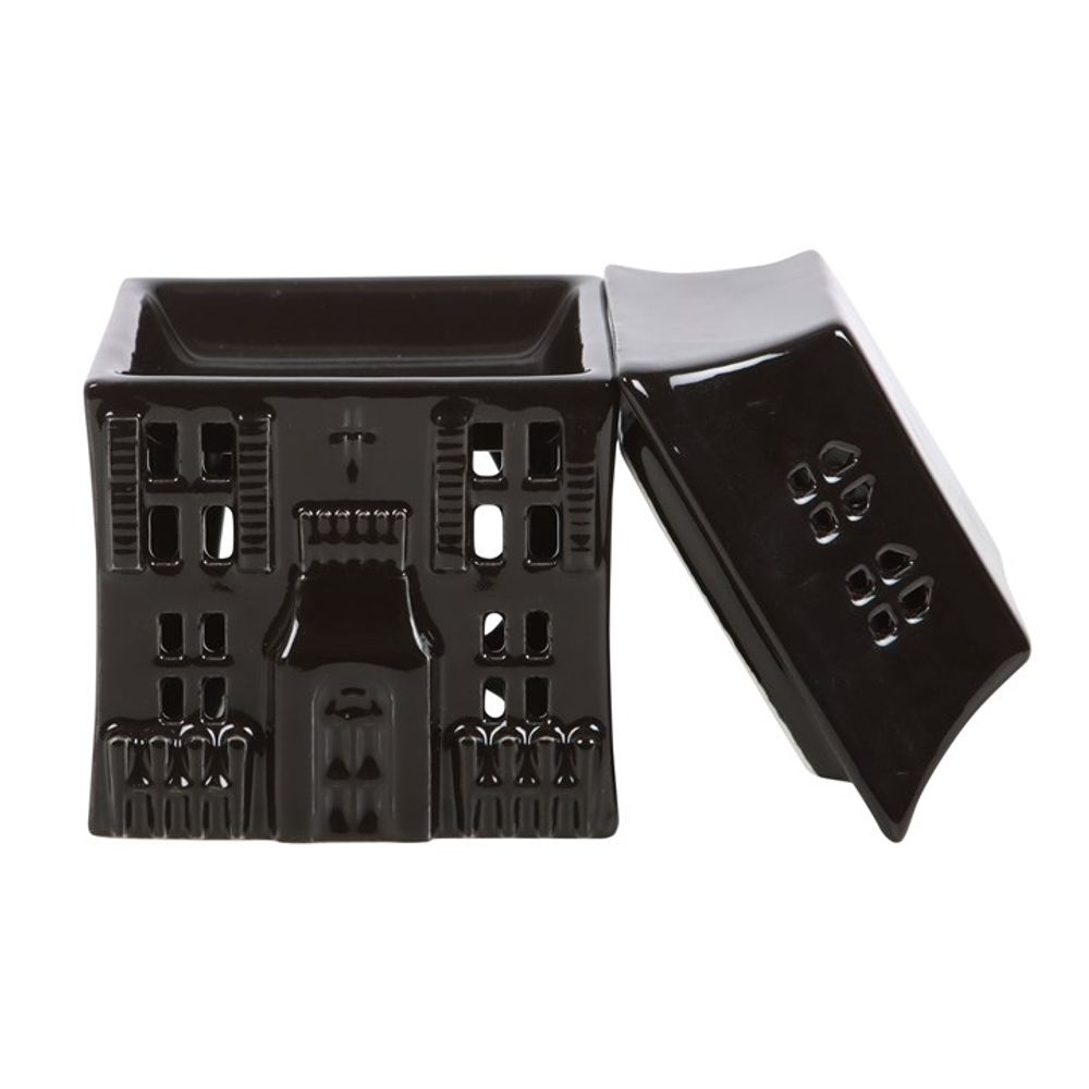 Embrace the 'spirit' of Halloween year-round with this spookily stylish haunted house oil burner. When a lit tealight is placed inside, the flickering flame casts eerie shadows, creating a bewitching atmosphere. A great piece for those who appreciate unconventional style and gothic decor