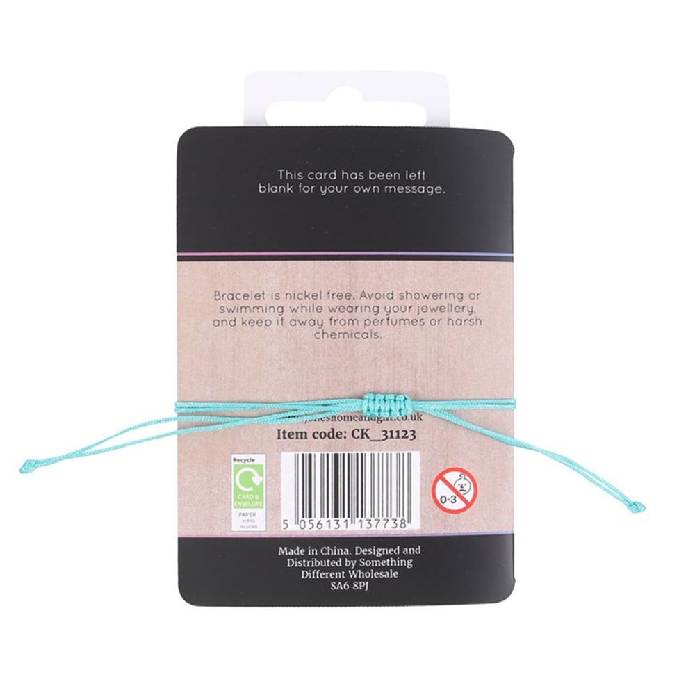 Balance and realign the heart chakra with this green string and metal charm bracelet. Presented on a matching backing card that reads, 'Love, compassion, empathy, forgiveness, change'