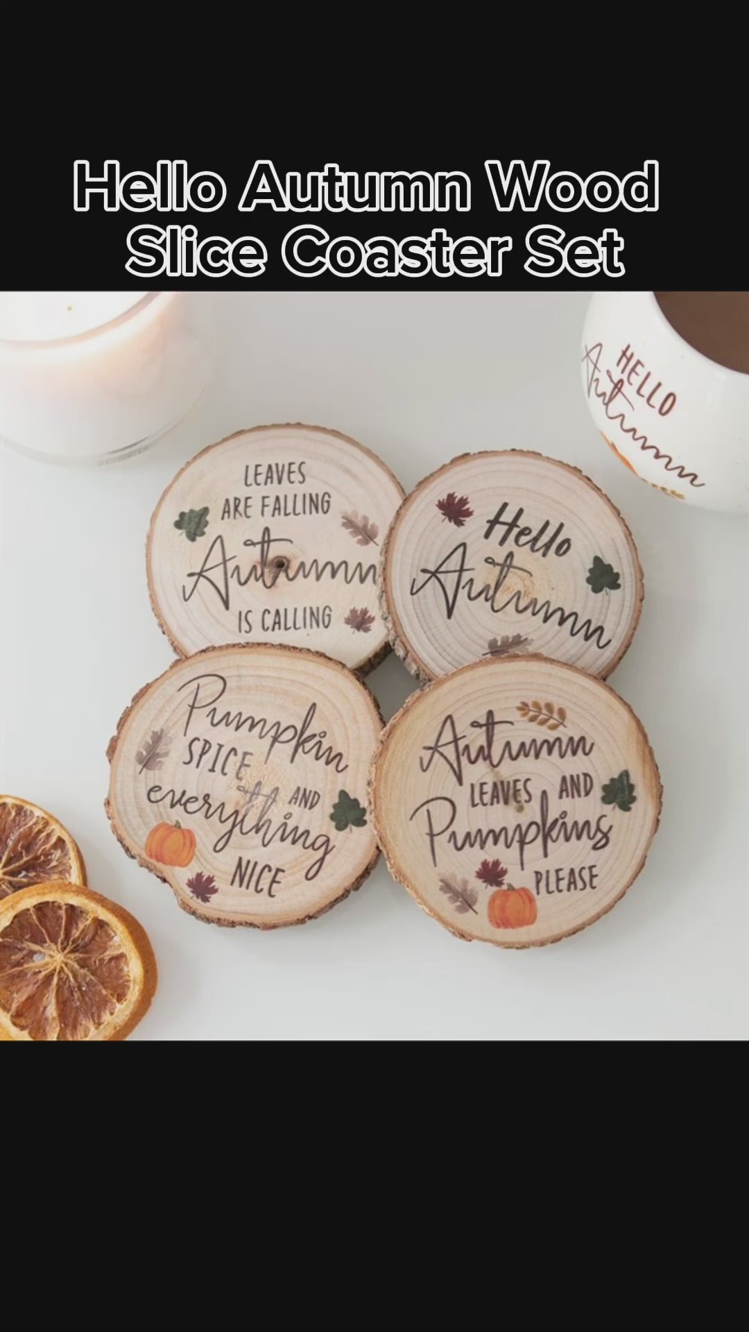 This set of four coasters is sure to bring some autumn cheer to any table setting or coffee table. Each coaster features cute, autumnal phrases accented by leaf and pumpkin illustrations to get you in the mood for chilly weather.
