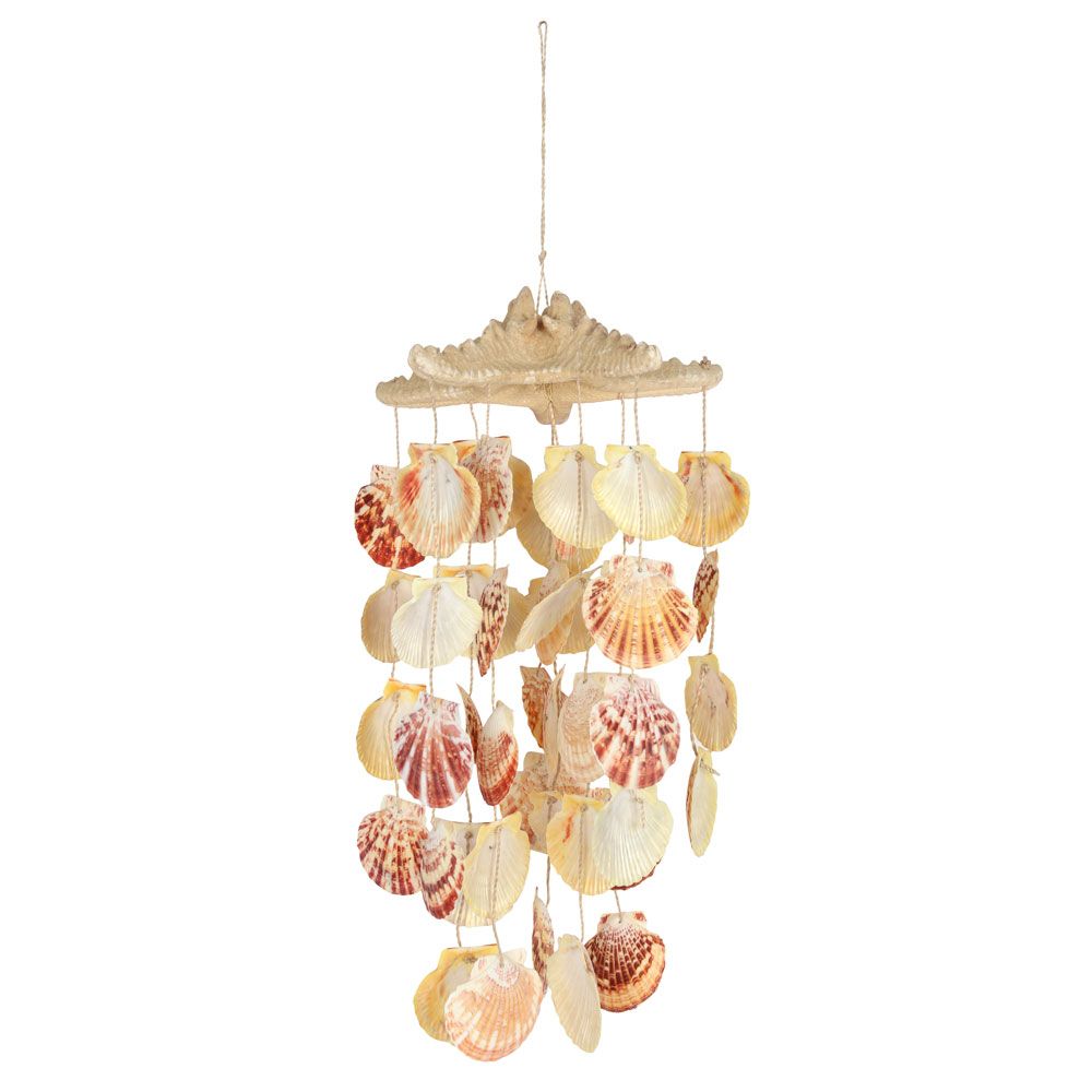 This beachy mobile features 10 strings of coloured shells hanging from a horn starfish. Great for traditional seaside decor both inside and out. Approximately 38cm long.