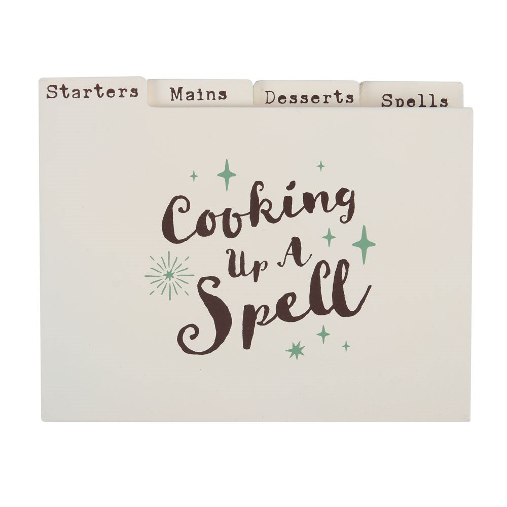 This wooden recipe box is sure to become a treasured family keepsake which is passed down generation to generation. Featuring a cauldron illustration bearing a triple moon design, the box also contains wooden dividers for separating tried and tested recipes for starters, mains, desserts and of course....spells.