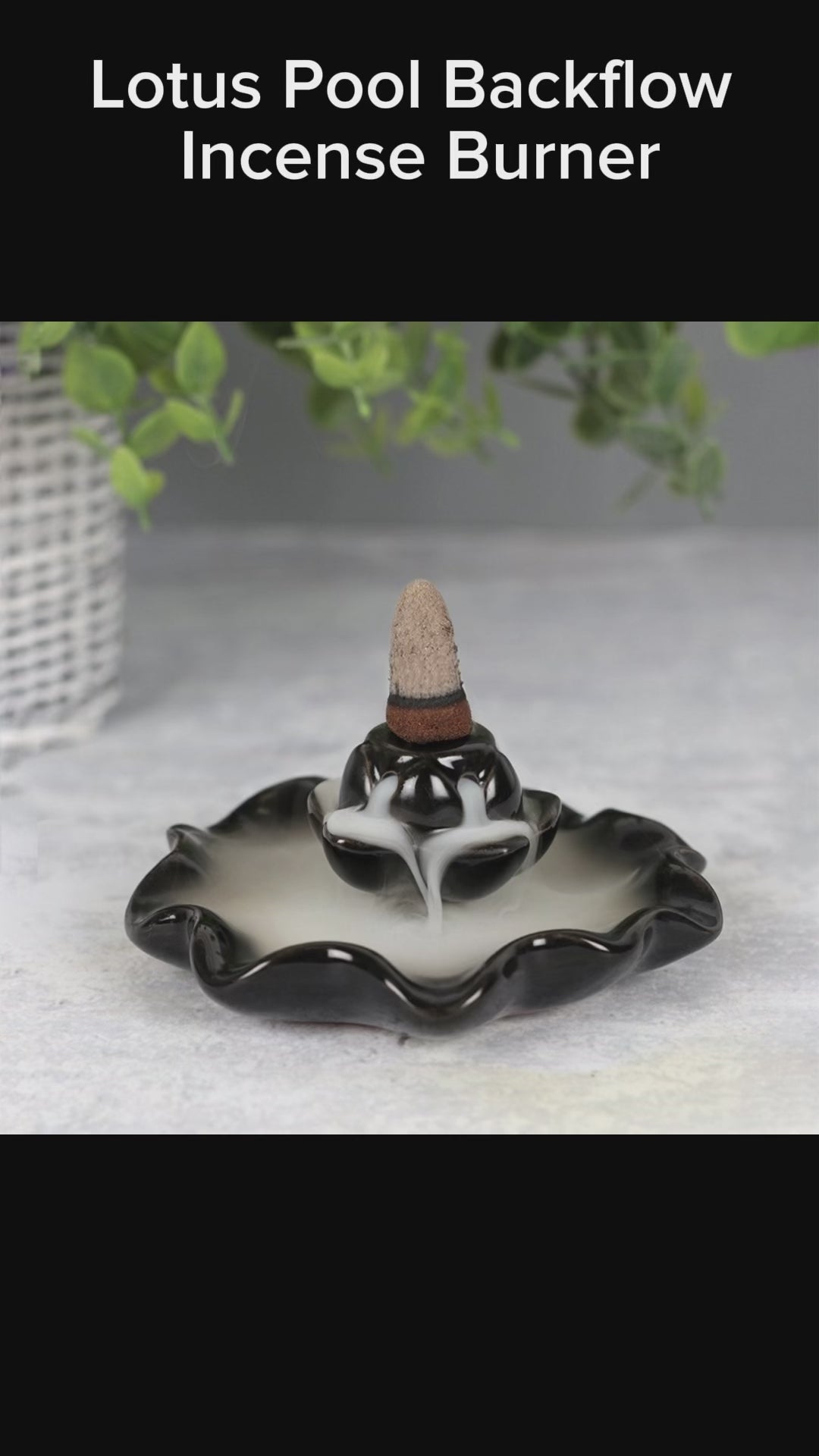 A simple yet beautiful backflow incense burner in a black ceramic lotus pool design. When the cone is lit the smoke from the cone cascades downwards in a mesmerising waterfall effect to pool at the bottom. Beautiful to watch.