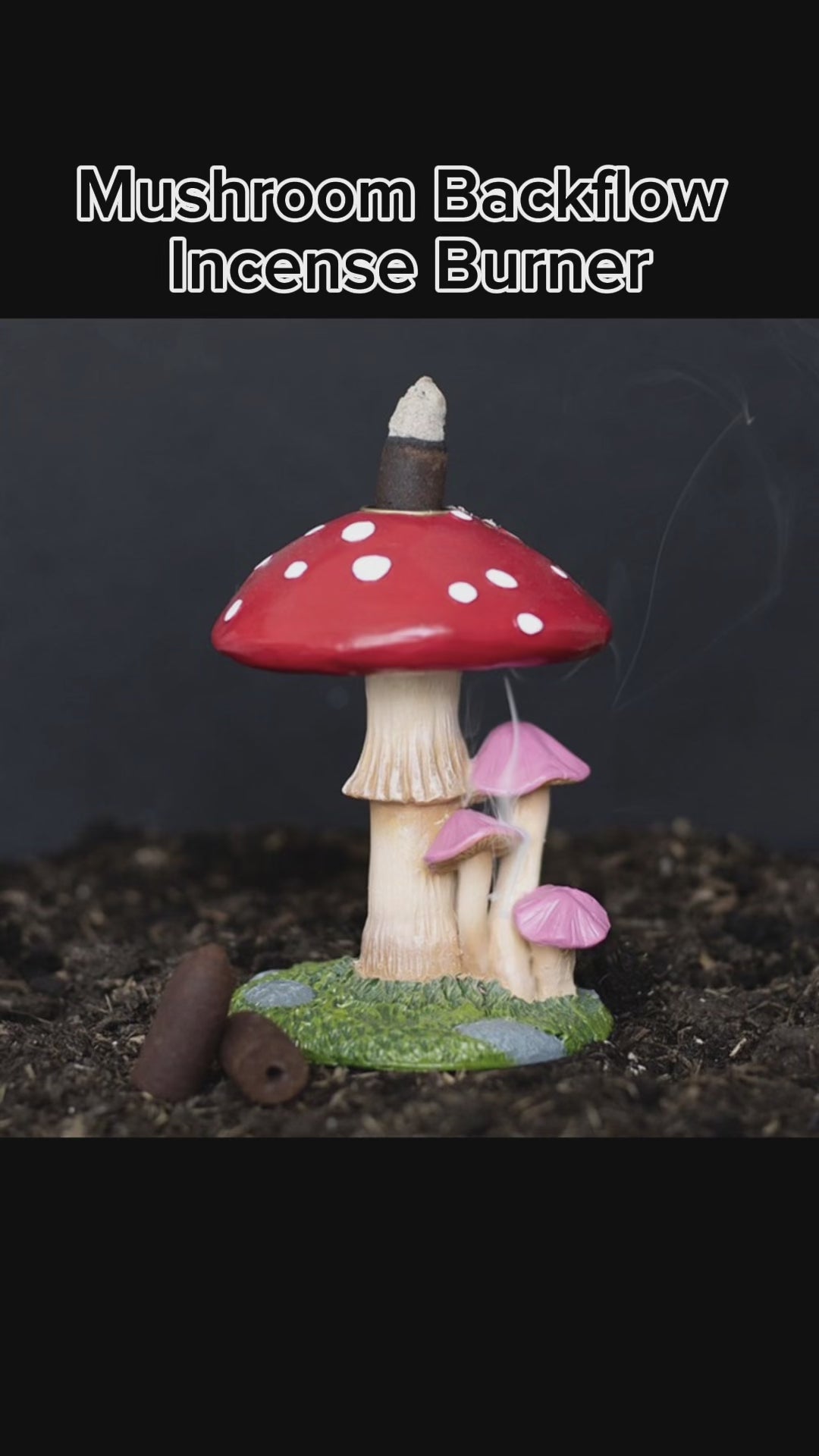 Create your own magickal woodland while fragrance the home with this whimsical forest mushroom backflow incense burner. Simply place a smoking backflow incense cone on top of the large toadstool and watch as smoke curls over the mushrooms below.