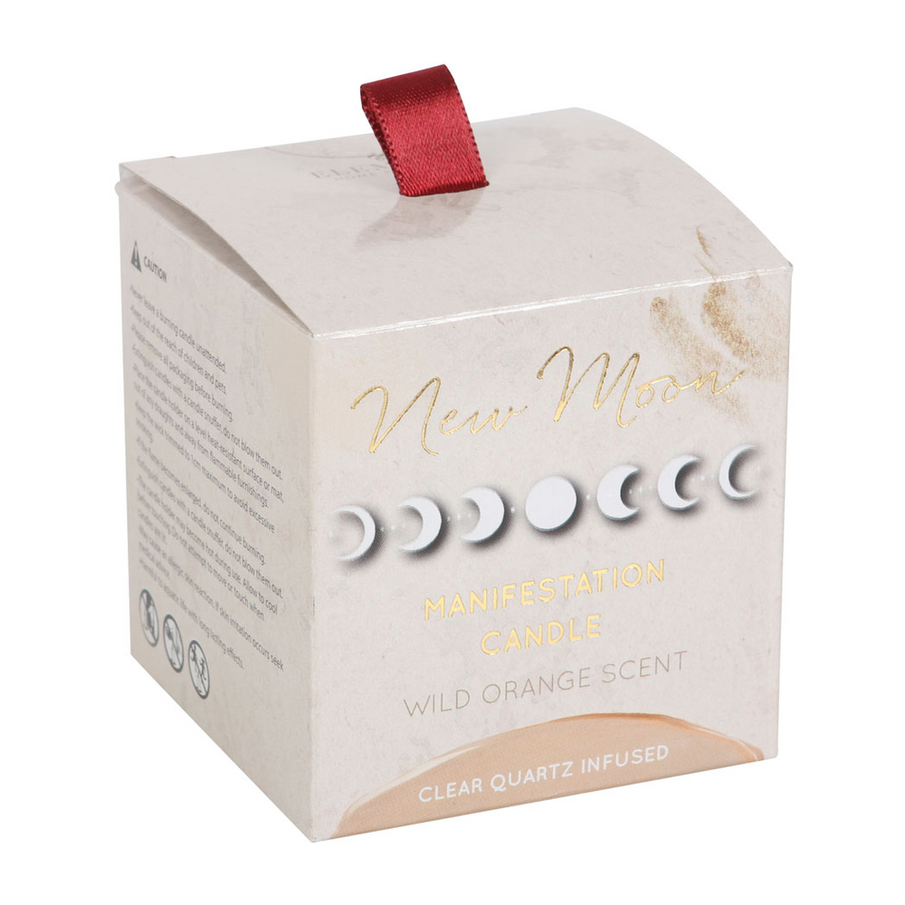 New Moon Wild Orange Manifestation Candle with Clear Quartz