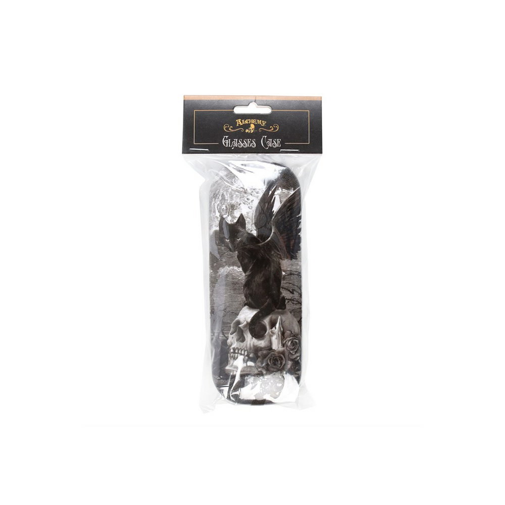 A hard shell glasses case featuring the eye-catching 'Nine Lives of Poe' black cat artwork from Alchemy Gothic. Includes a microfibre cleaning cloth for removing dust and smudges. Officially licensed.