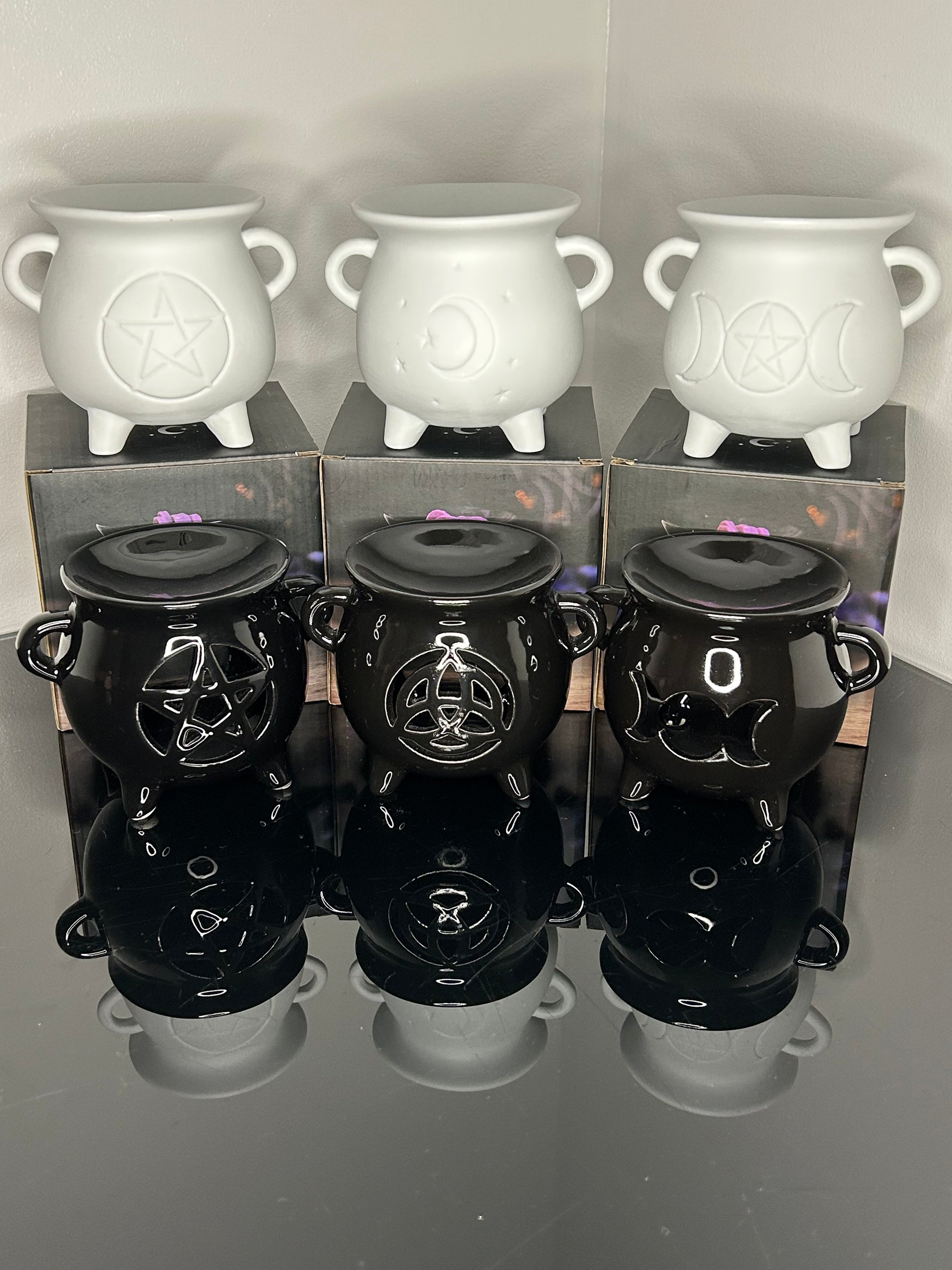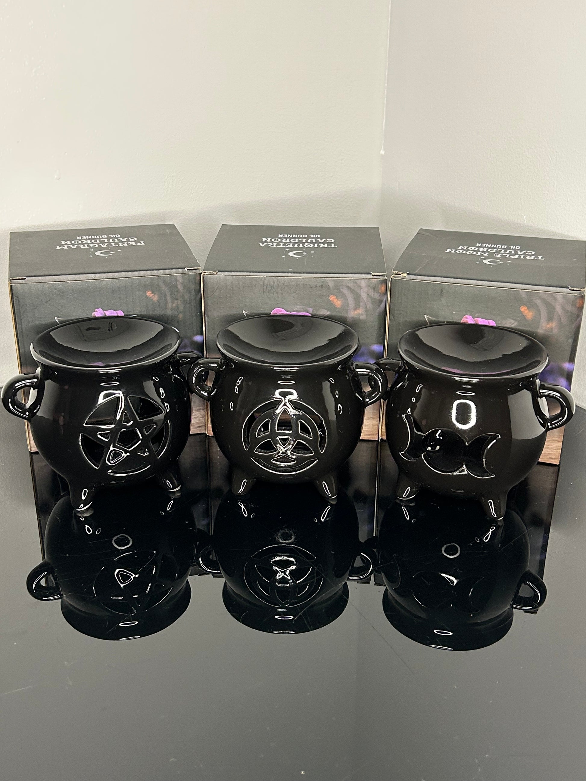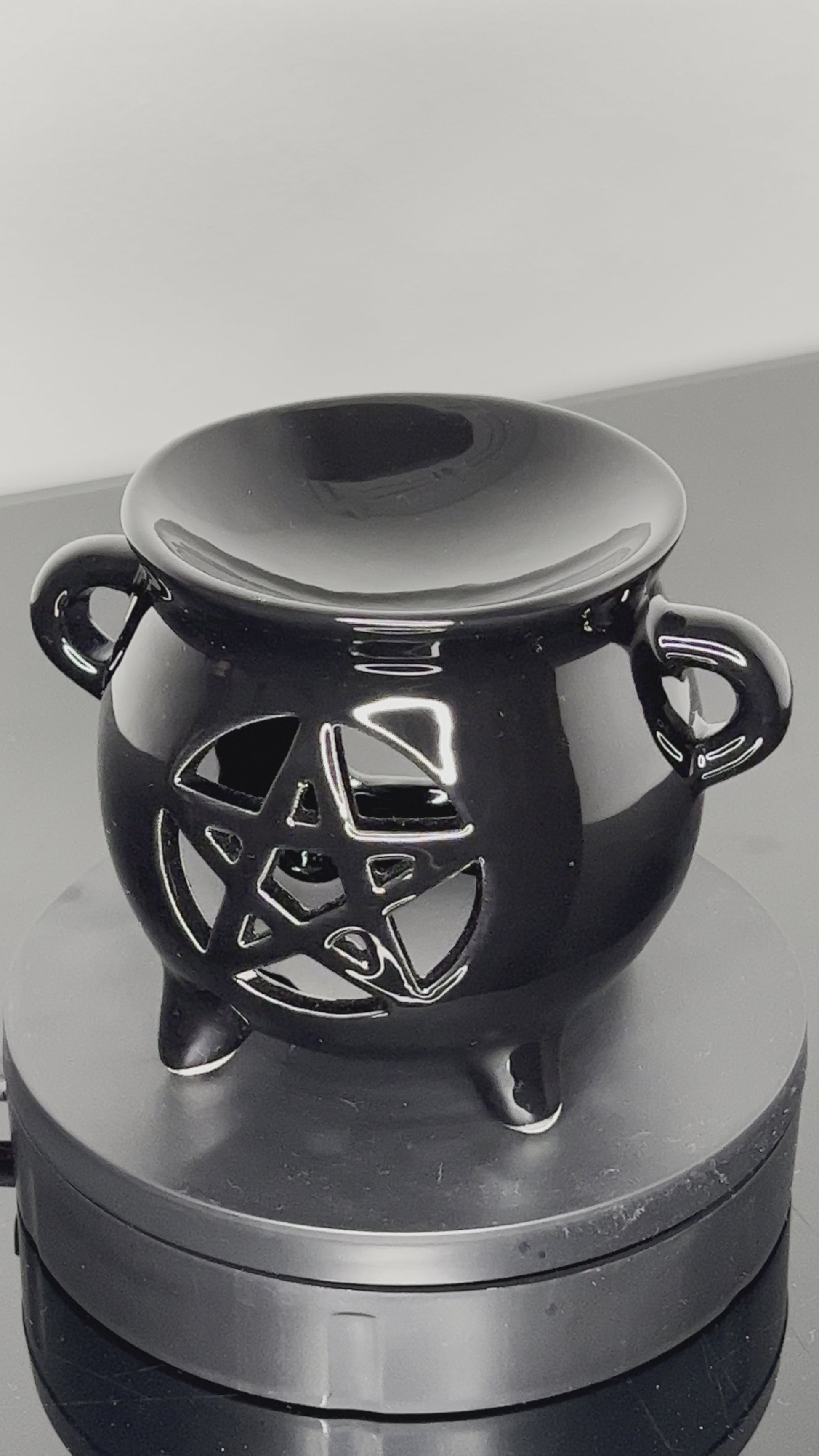 Our bestselling cauldron oil burner now has a sibling! This alternative oil burner and wax warmer features a cut out pentagram design that is sure to be another best seller. These oil burners can also be used with wax and pair perfectly with our exclusive range of Gothic Eco Soy Wax Melts (sold separately).