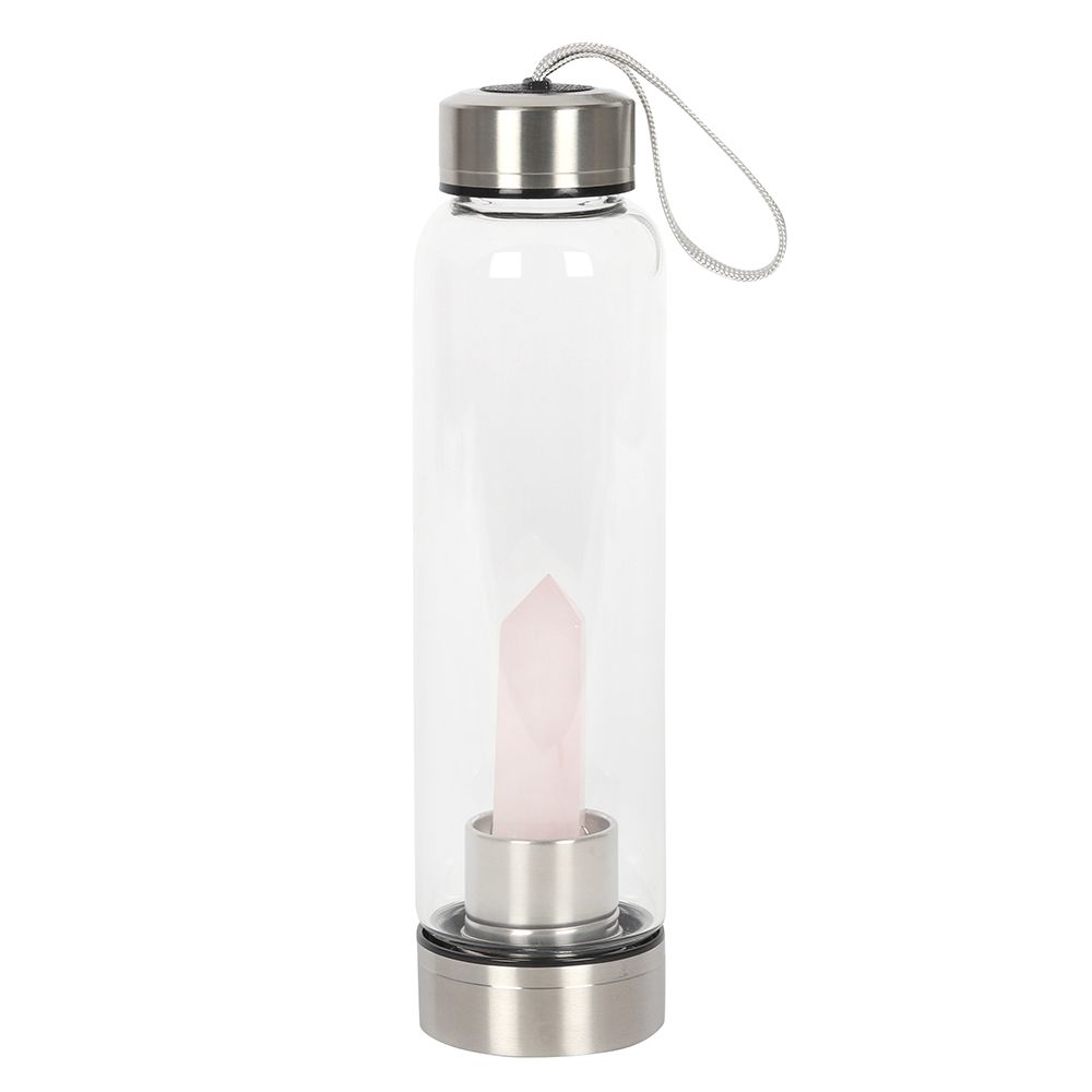 Harness the claimed benefits of crystals in your daily routine with this rose quartz glass water bottle. The water bottle has a screw off base making cleaning easy and simple. A rubberised base and neoprene slip cover help to protect the bottle which holds 532ml of water.