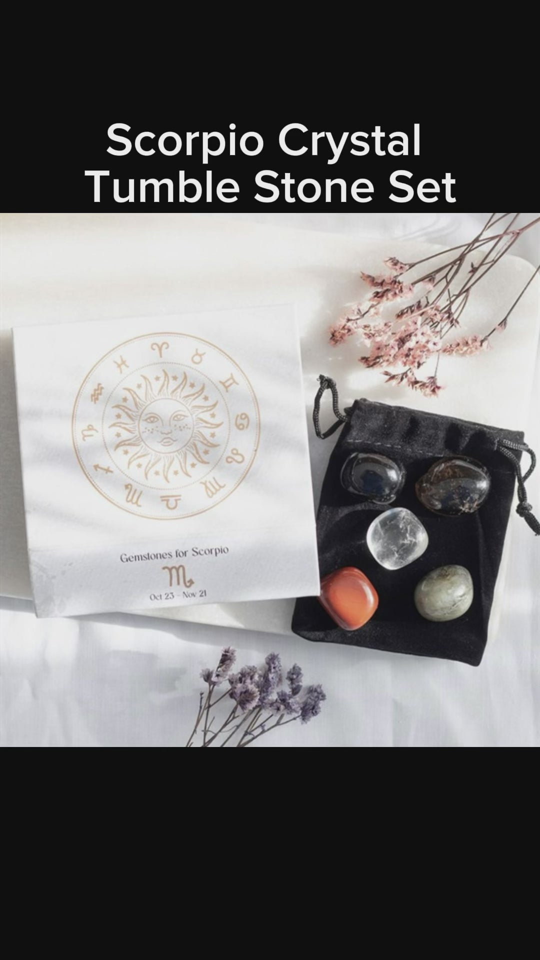 This stunning set of five crystal tumble stones are perfect for the strong, enigmatic and brave Scorpio. Designed to enhance and balance the unique traits of Scorpio individuals, by combining the harmonising power of crystals with the innate qualities of this Water sign. The set includes Smokey Quartz for emotional balancing energies, Black Obsidian for clarity, Labradorite for trust, Red Jasper for protection and Clear Quartz for balance. Beautifully presented in a magnetic closure gift box with information regarding each crystal, and a velvet drawstring bag to keep the tumble stones protected.