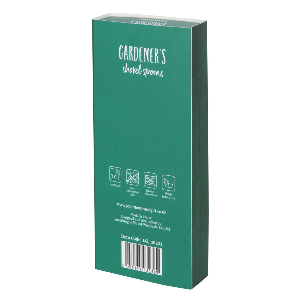 This set of 2 adorable teaspoons comes shaped like mini garden shovels that make unique accents to the breakfast table. Do not microwave. Dishwasher safe.