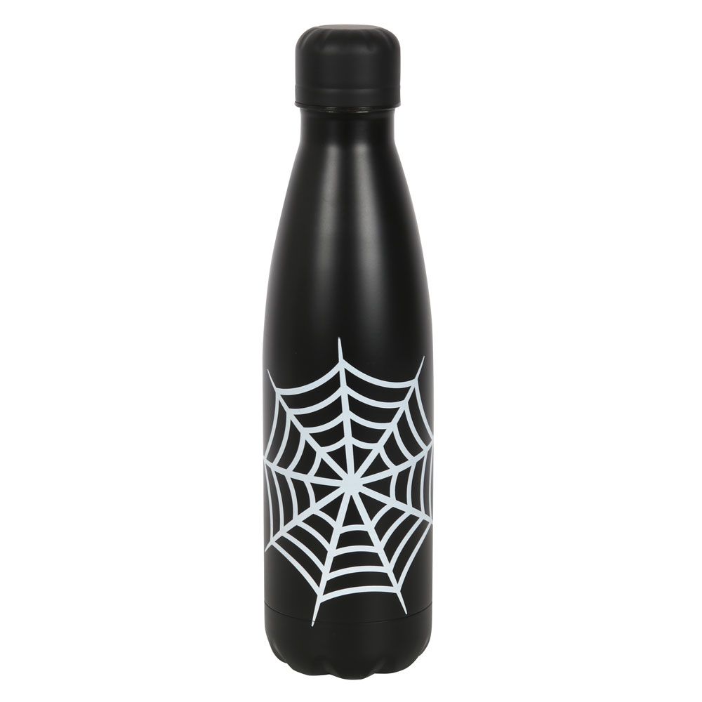 This black metal water bottle makes a great eco-friendly replacement for plastic and features a cool spiderweb design. This item features a convenient screw-top lid to prevent accidental spills. 500ml capacity. Hand wash only. Do not microwave. Suitable for hot or cold beverages. BPA free.