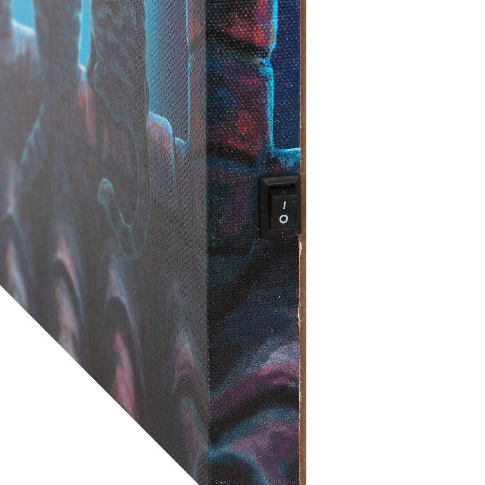 Measuring 30x30cm, this square canvas features a high quality colour print of the 'Wish Upon a Star' artwork by popular artist Lisa Parker. Light up details bring this magical piece to life. The switch is located on the side of the canvas and may be slightly obscured by the packaging upon delivery. Requires 2 x AA batteries.