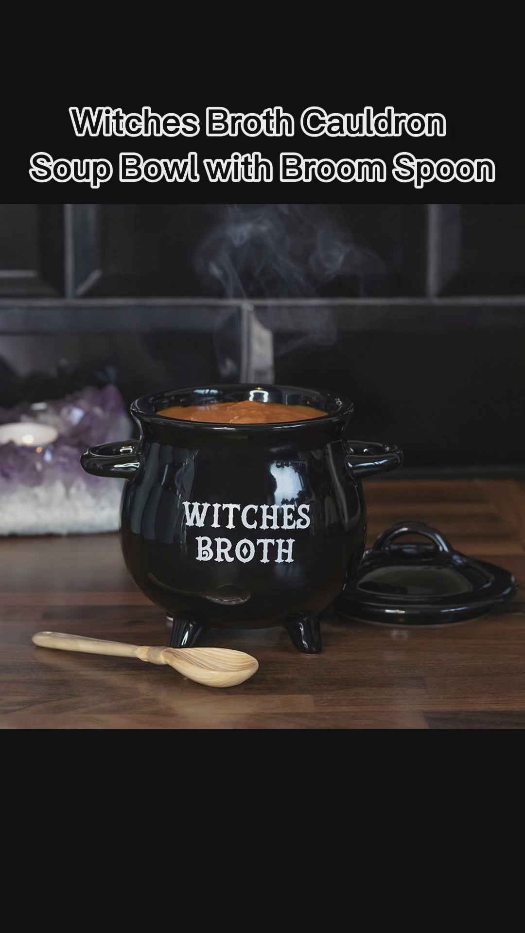 Witches Broth Cauldron Soup Bowl with Broom Spoon